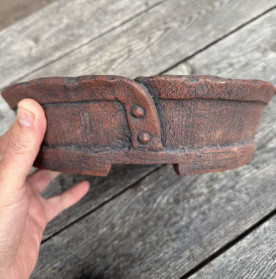 Die Schale ist ebenfalls handgefertigt von Joseph Mairhofer. Sie hat einen Durchmesser von innen ca. 25cm, außen ca. 30cm. Die Höhe beträgt ca. 7-9cm außen und innen 6cm.